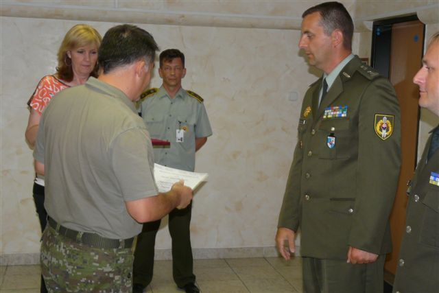 Po prečítaní personálnych rozkazov náčelníkom Oddelenia personálnej podpory podplukovníkom Petrom Šurabom poďakoval plukovník Stoklasa obidvom vyslaným príslušníkom síl za dlhoročnú prácu, ktorú v prospech síl vykonali. Ako ocenenie za prácu v prospech veliteľstva im udelil pamätné odznaky veliteľa Síl výcviku a podpory 1. stupňa.